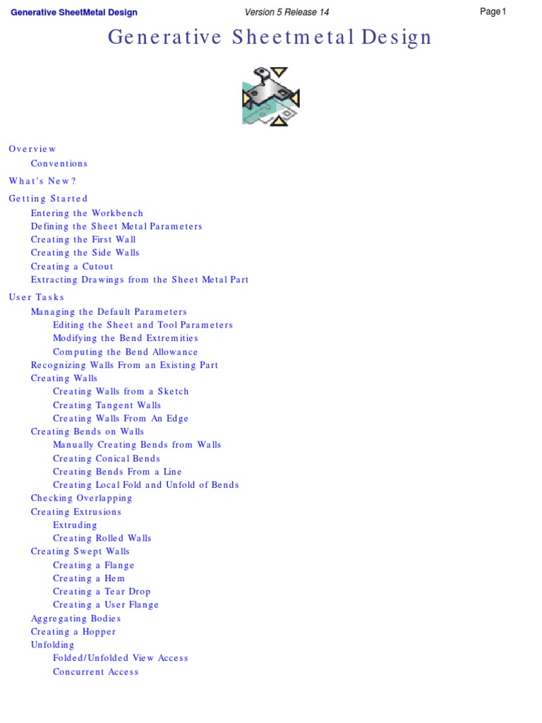 Sheet metal design generative sheet metal design sheet metal production and aerospace sheet metal design sheet metal design is primarily used to modify sheet metal parts created in catia v5r14 or earlier and sheet metal production is used to perform validation checks.